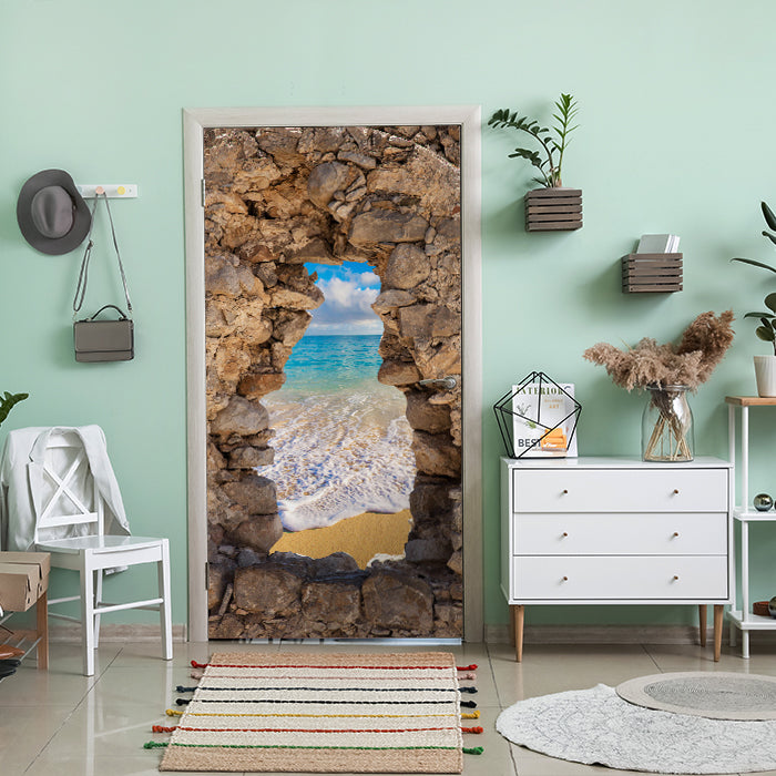 Entdecke die Türtapete 3D Steine, Brandung, Meer, Strand, Blau
