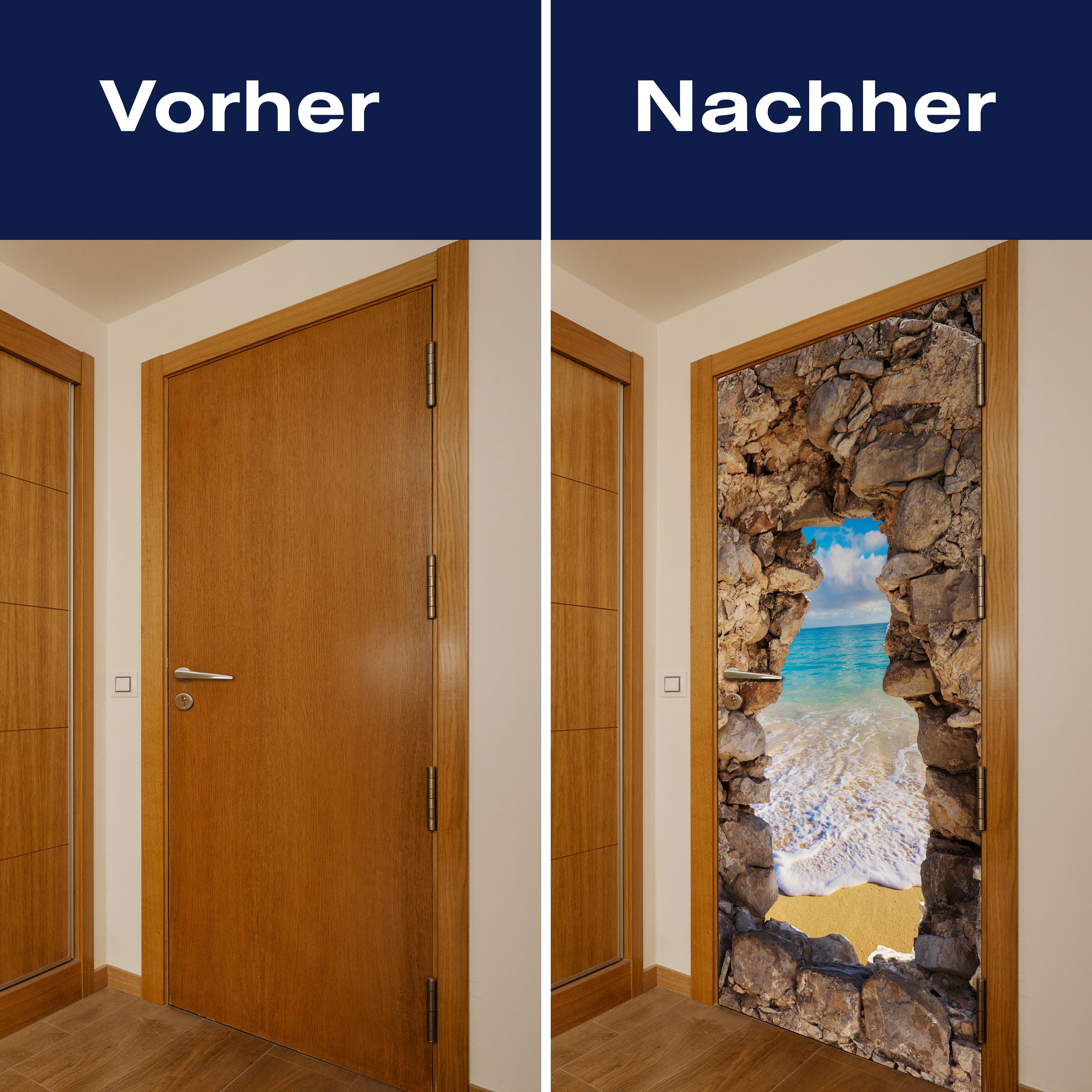 Mit unserer Türtapete verwandelst du jede gewöhnliche Tür in ein Kunstwerk. Ob du die Atmosphäre deines Wohnraums aufwerten oder deinem Haus einen neuen Charakter verleihen möchtest, unsere Türtapeten bieten eine einzigartige Möglichkeit, Veränderung zu gestalten. Lass dich von der Einfachheit der Anwendung begeistern und erlebe, wie deine Räume durch die Kraft des Designs und der Farbe transformiert werden.