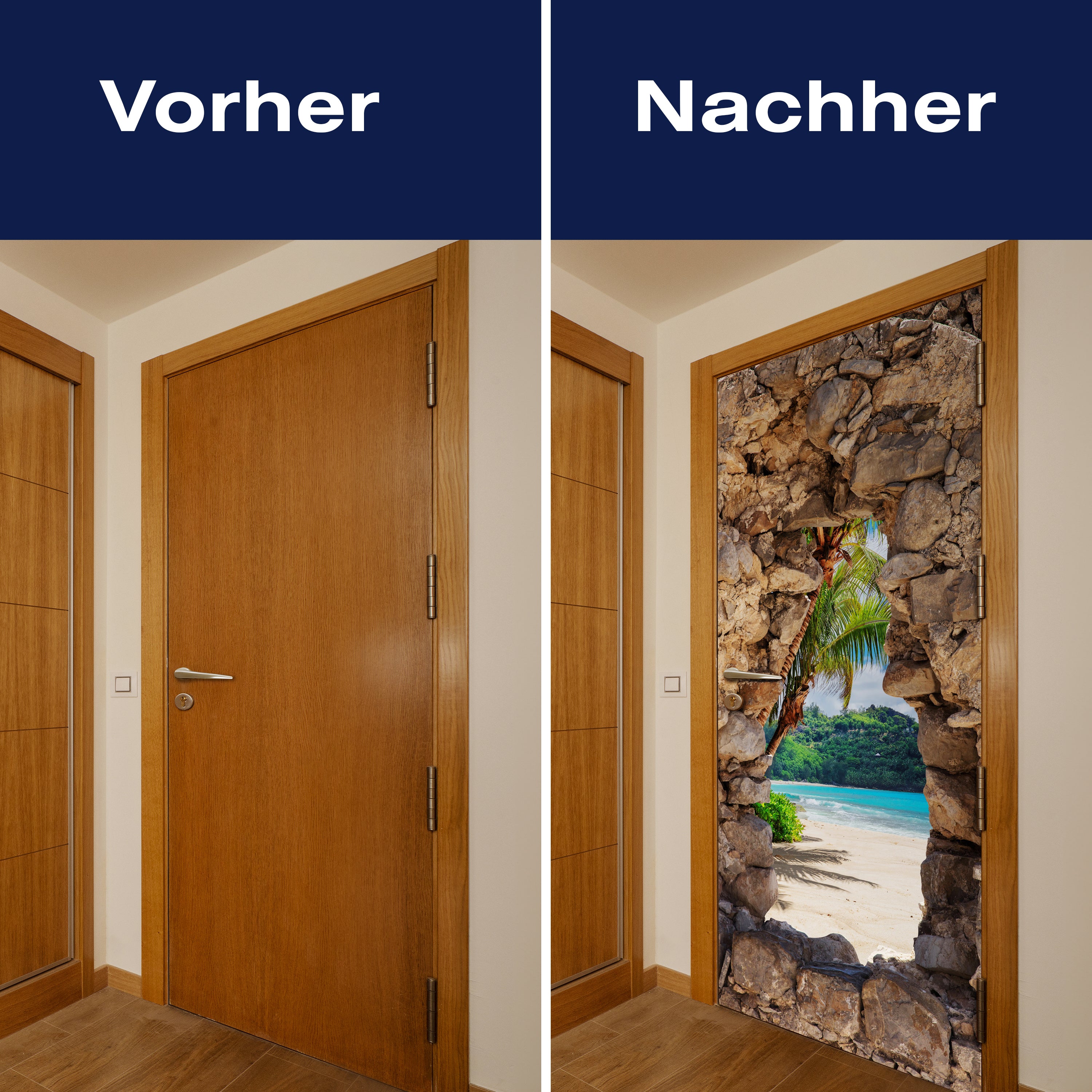 Hast du jemals darüber nachgedacht, wie eine einfache Veränderung deinen Wohnraum komplett umgestalten kann? Die Türtapete 3D Steine, Palmen, Insel, Strand, Meer von Wandmotiv24 ist genau das, was du brauchst, um deinem Zuhause einen Hauch von Einzigartigkeit und Stil zu verleihen. Dieses einzigartige Design erzielt eine atemberaubende visuelle Wirkung, die jeden Betrachter in den Bann zieht.
