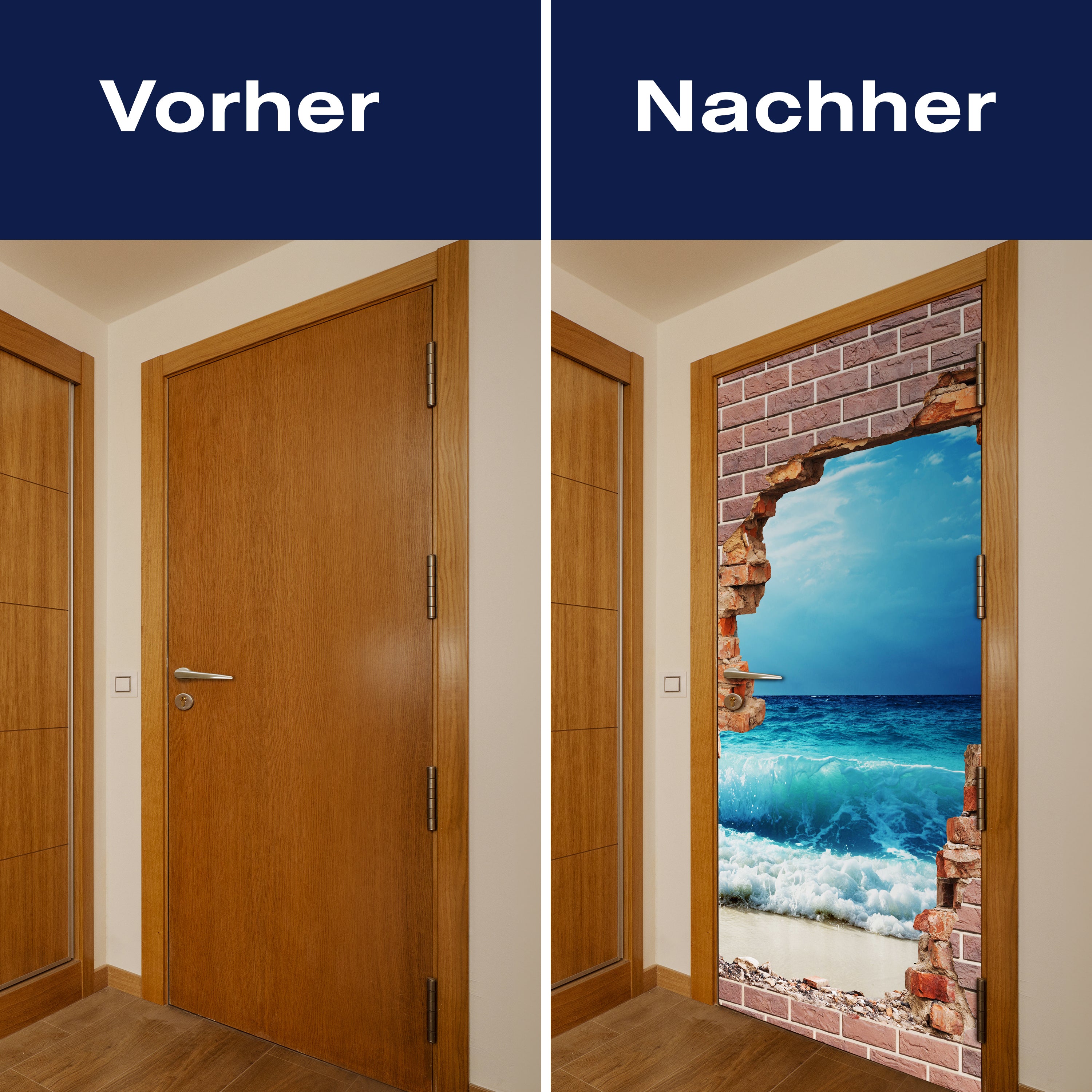Entdecke die Türtapete 3D Ziegelwand, Meer, Wellen, Strand