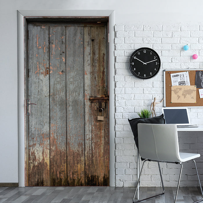 Entdecke die Türtapete alte Holztür mit Schloss, Grau, Farbe