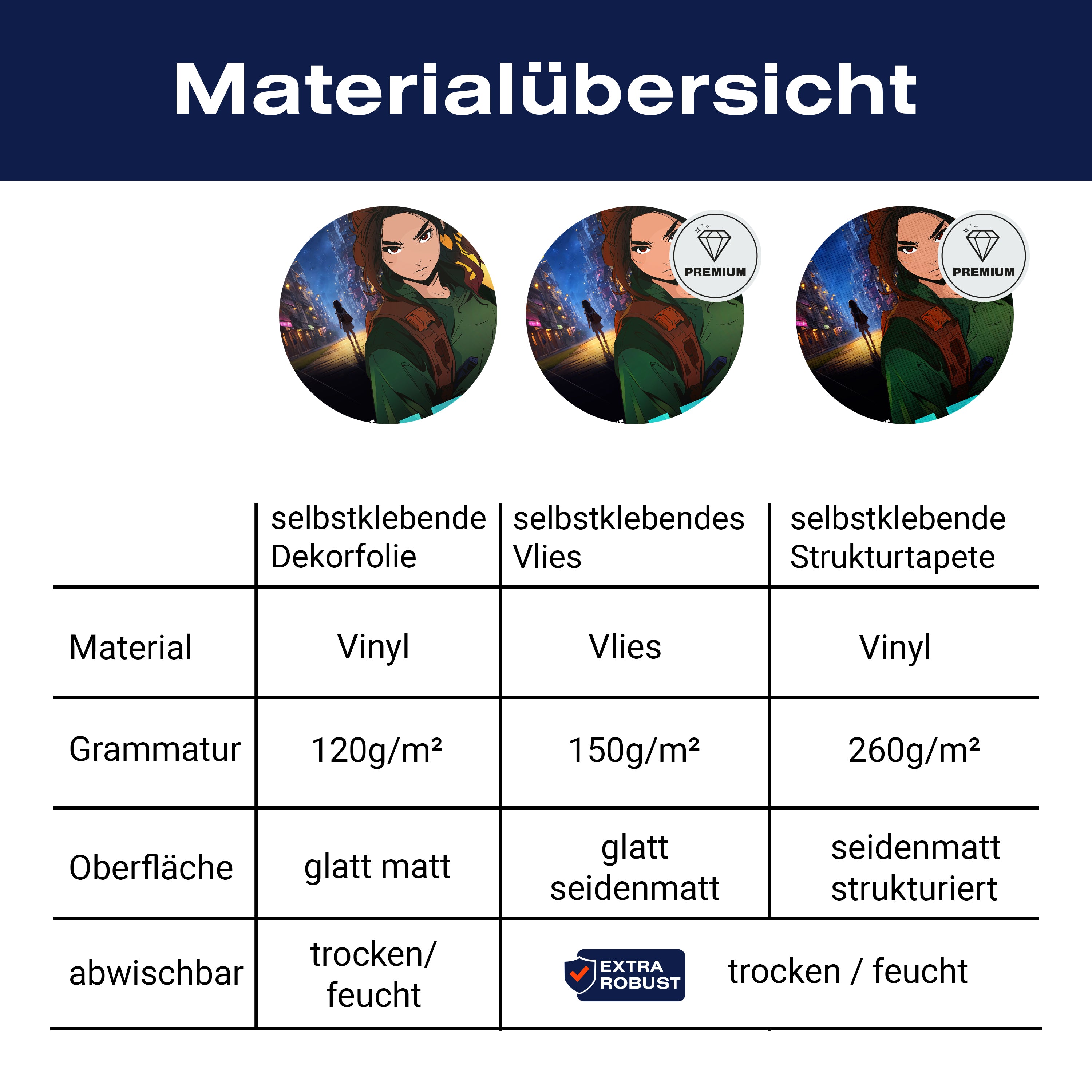 Sag ade zu komplizierten Anbringungsprozessen. Unsere Türtapeten, verfügbar in den Größen von 70x200 cm bis 100x200 cm, ermöglichen eine kinderleichte Installation. Wähle zwischen selbstklebender Dekorfolie, Vlies 150g oder Strukturtapete 260g, um deinem Zuhause einen Hauch von Eleganz zu verleihen.