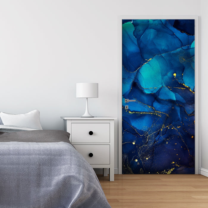 Entdecke die Türtapete blau grüner Marmor mit Gold, dunkel