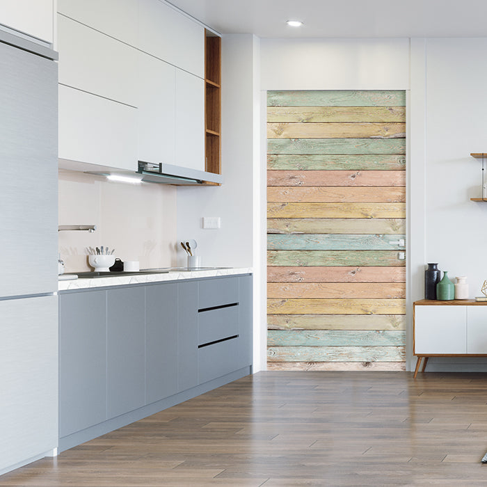 Türtapete bunte Holzplatte, Palisaden, bunt, Holz M1239
