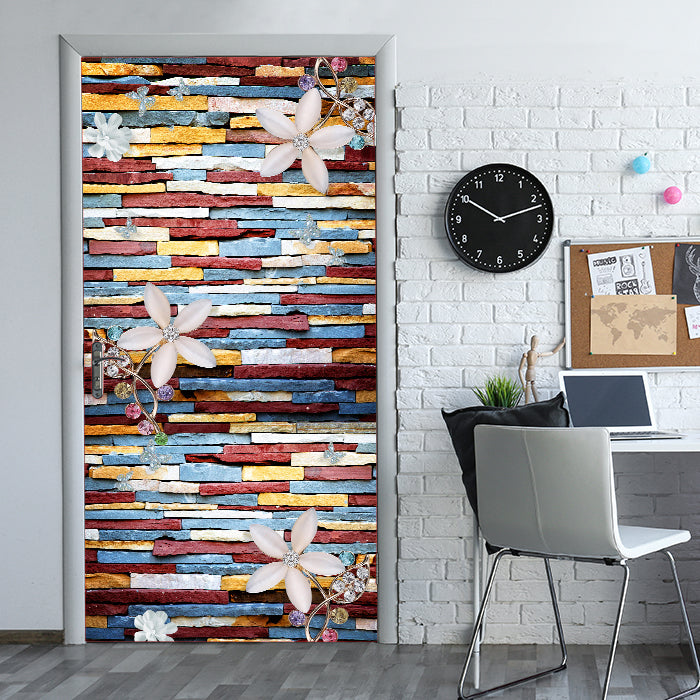 Entdecke die Türtapete bunte Steinwand, Blumen & Edelsteine