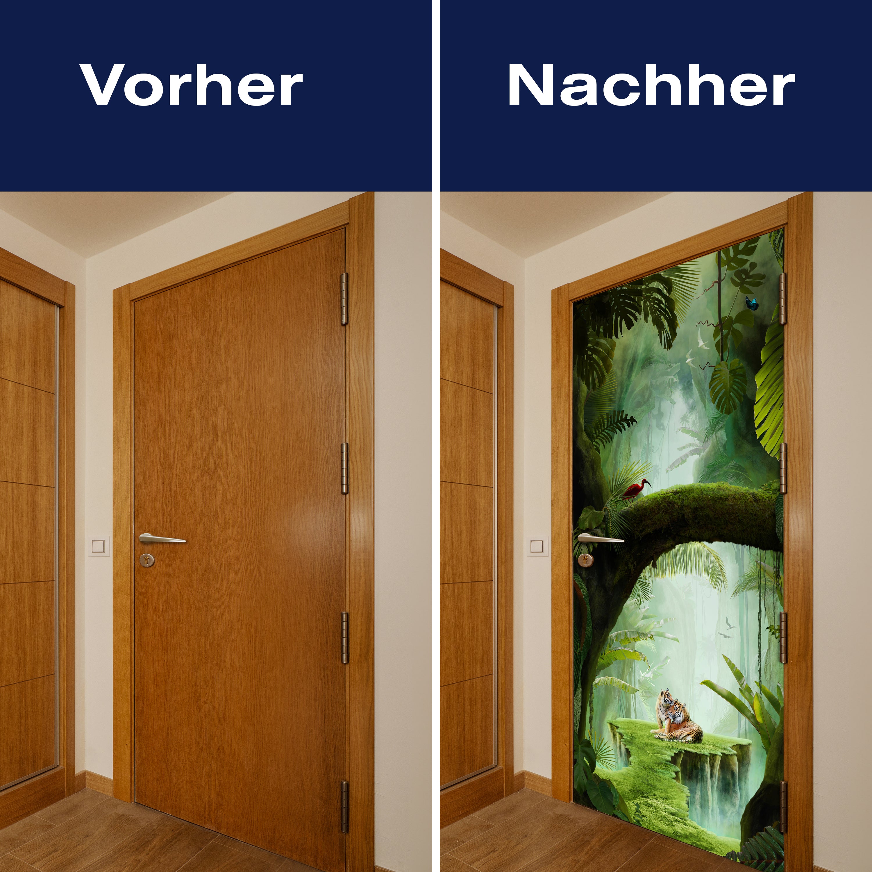 Hast du jemals darüber nachgedacht, wie eine einfache Veränderung deinen Wohnraum komplett umgestalten kann? Die Türtapete Dschungel & Tiere, Fantasy, Urwald, Moos von Wandmotiv24 ist genau das, was du brauchst, um deinem Zuhause einen Hauch von Einzigartigkeit und Stil zu verleihen. Dieses einzigartige Design erzielt eine atemberaubende visuelle Wirkung, die jeden Betrachter in den Bann zieht.