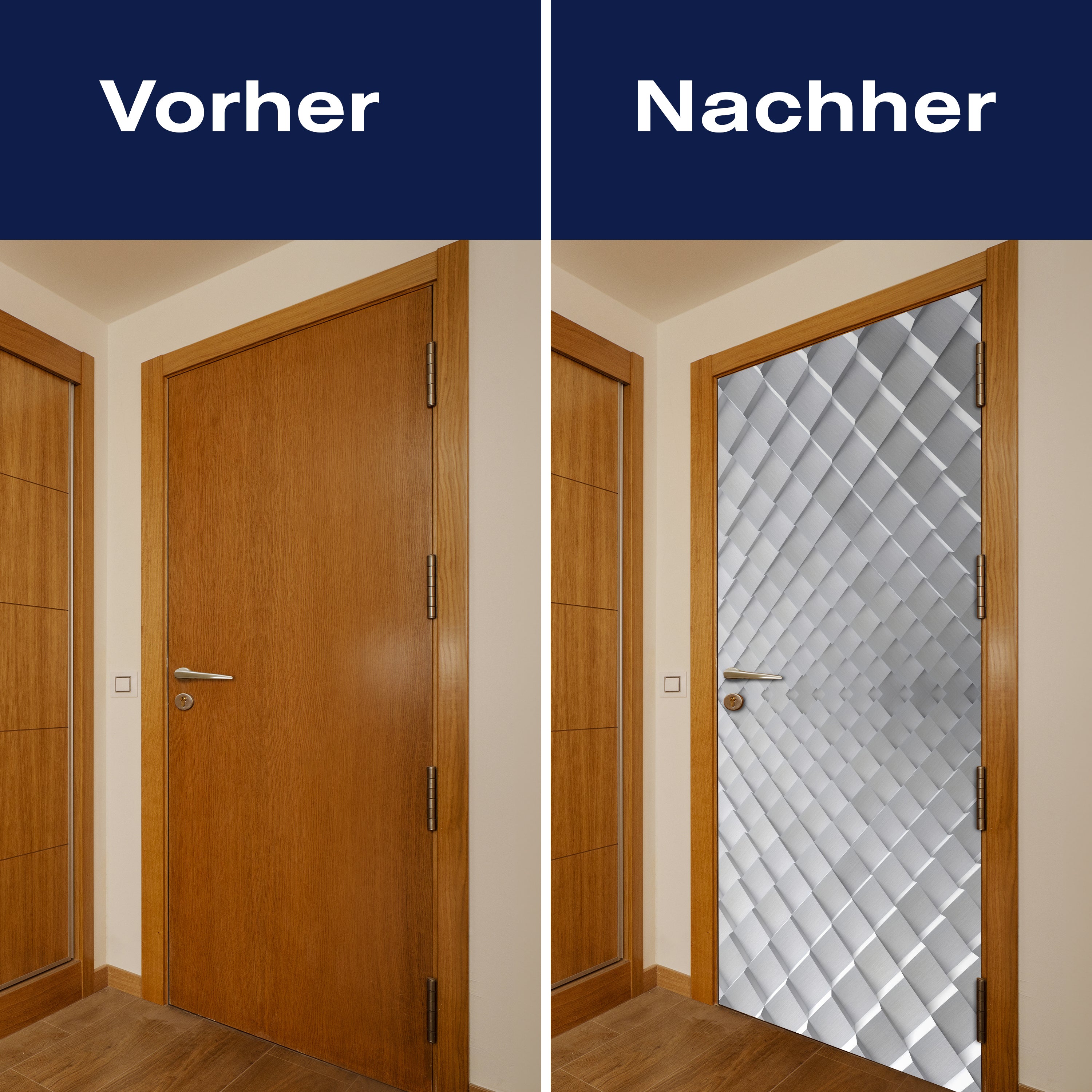 - Drücke die Kanten und Ecken der Türfolie vorsichtig an, um sicherzustellen, dass sie gut haften und keine Ablösungen entstehen.