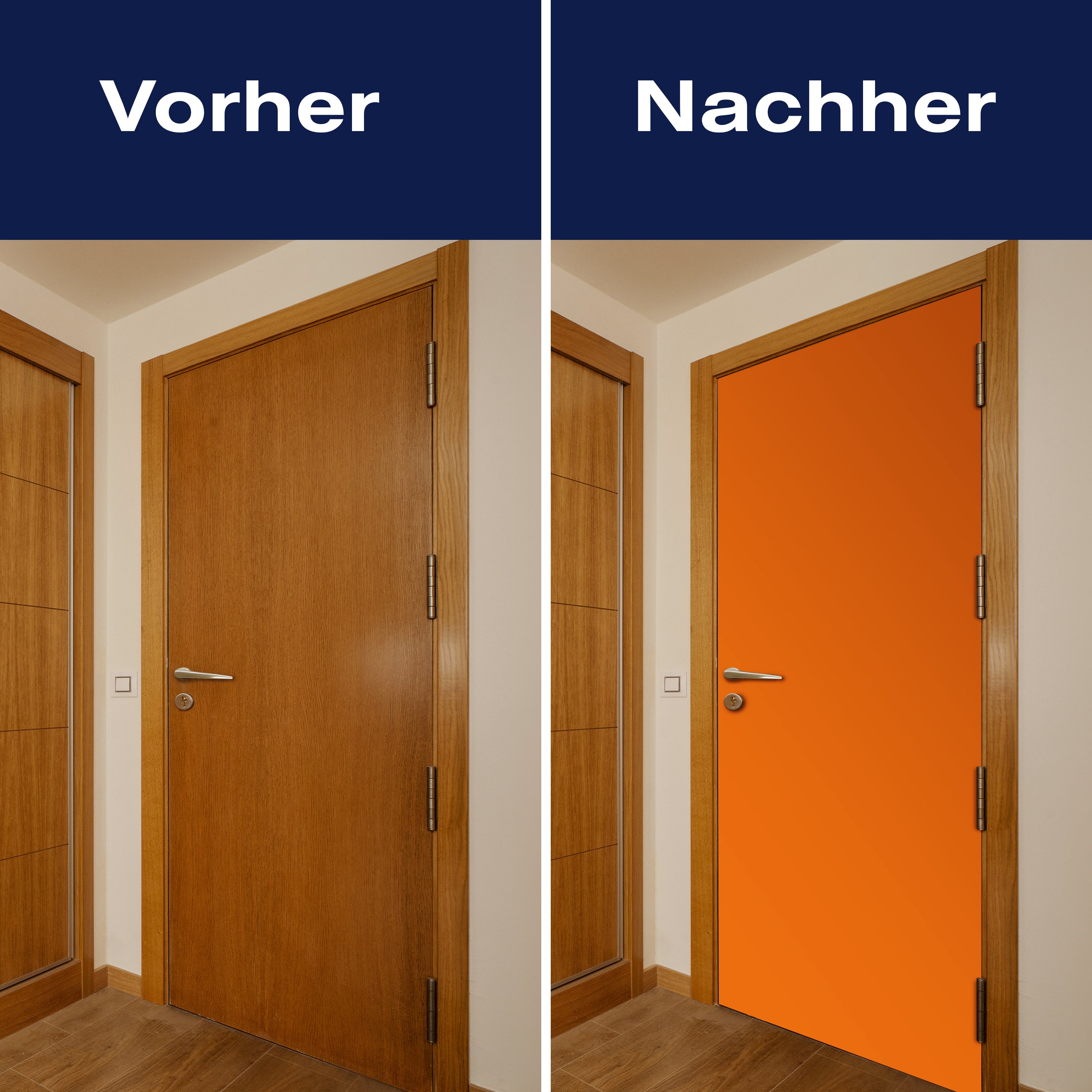 - Drücke die Kanten und Ecken der Türfolie vorsichtig an, um sicherzustellen, dass sie gut haften und keine Ablösungen entstehen.