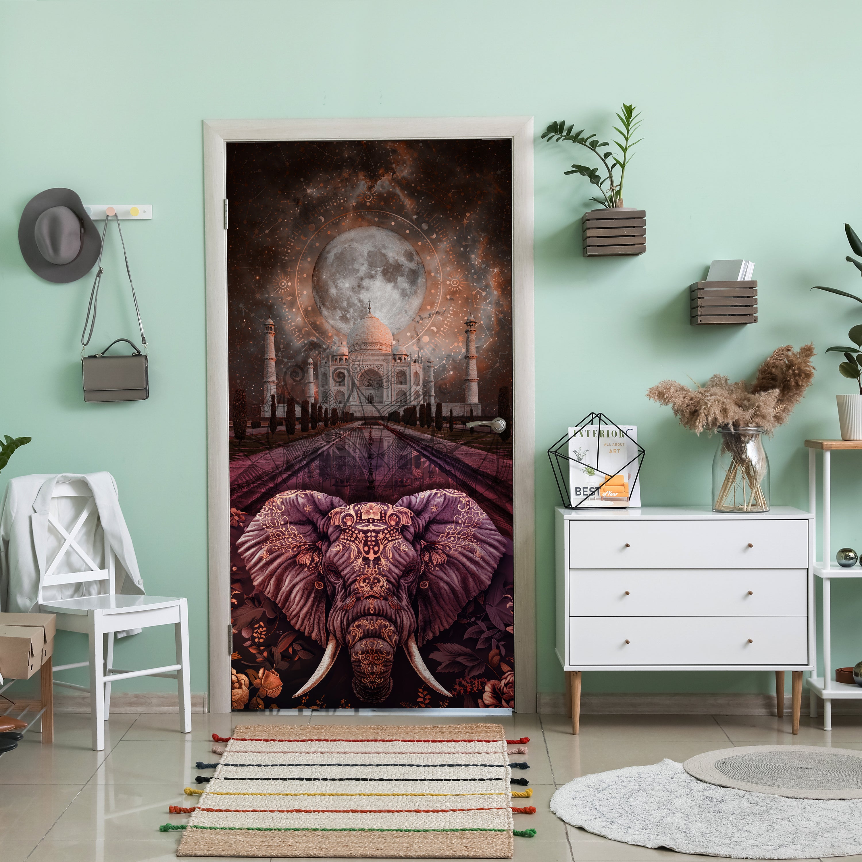 Entdecke die Türtapete Elefant, Taj Mahal, rosa