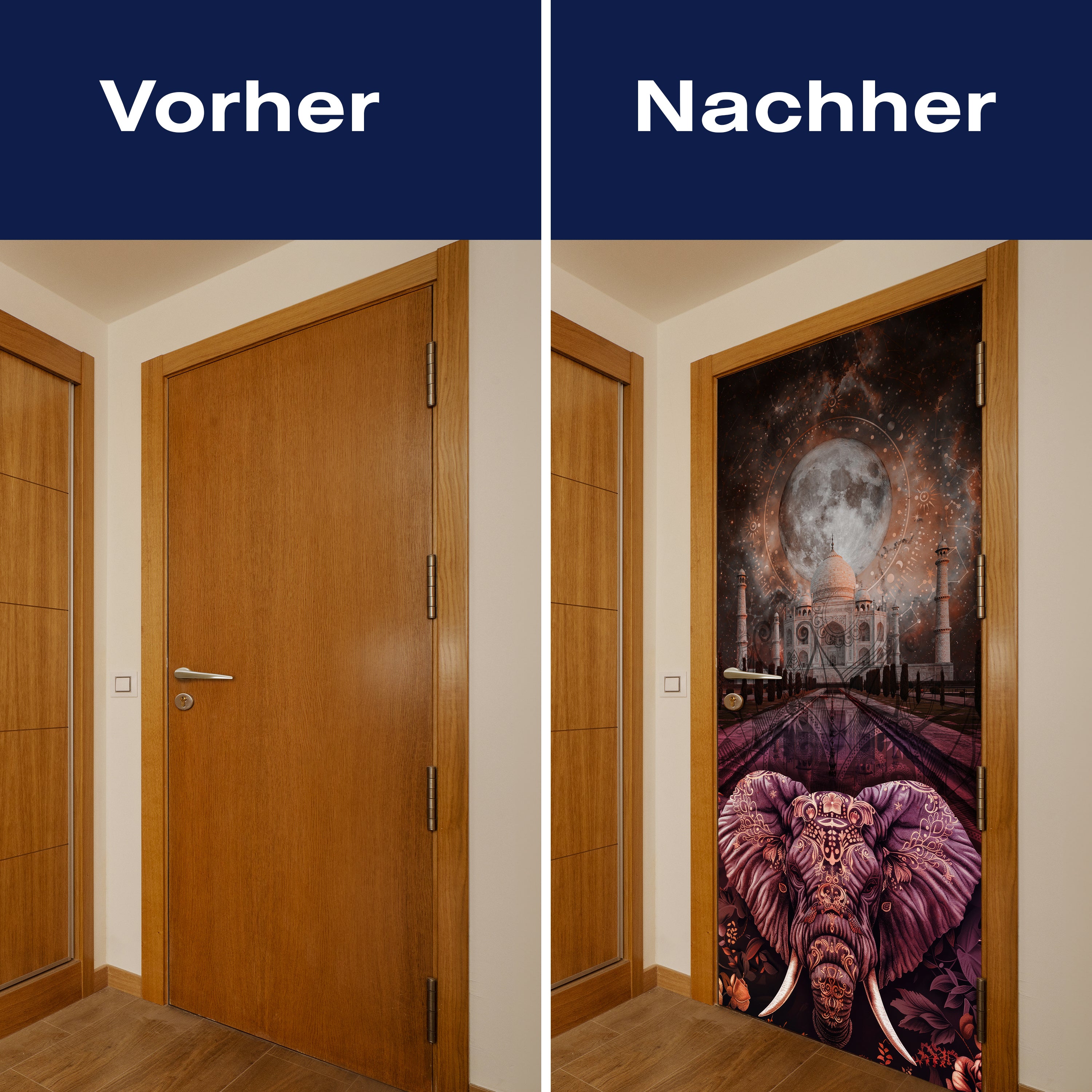 Mit unserer Türtapete verwandelst du jede gewöhnliche Tür in ein Kunstwerk. Ob du die Atmosphäre deines Wohnraums aufwerten oder deinem Haus einen neuen Charakter verleihen möchtest, unsere Türtapeten bieten eine einzigartige Möglichkeit, Veränderung zu gestalten. Lass dich von der Einfachheit der Anwendung begeistern und erlebe, wie deine Räume durch die Kraft des Designs und der Farbe transformiert werden.