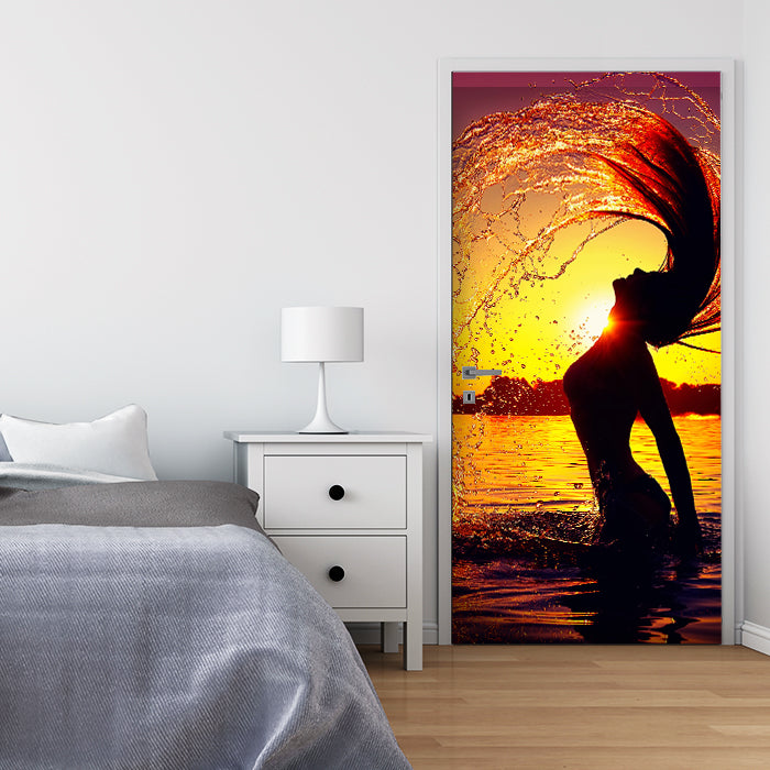 Entdecke die Türtapete Frau Model Sonnenuntergang Meer