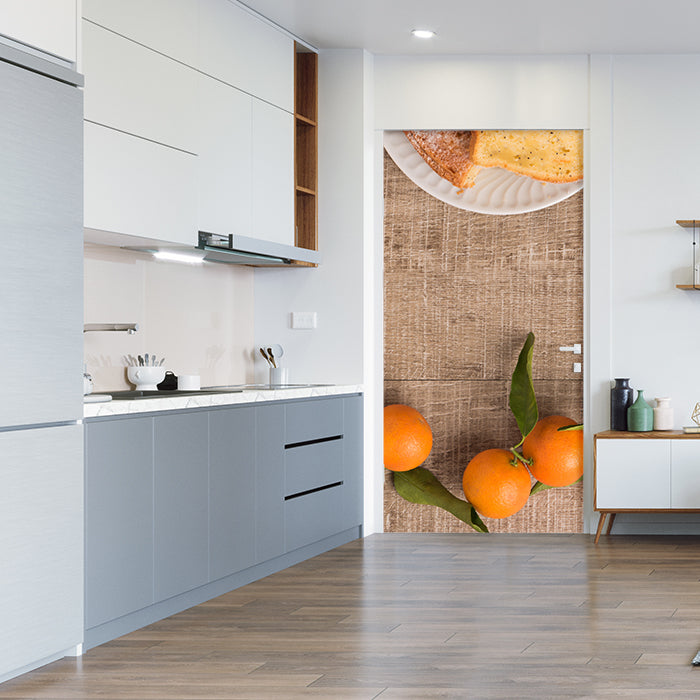 Entdecke die Türtapete Frische Clementinen und Kuchen