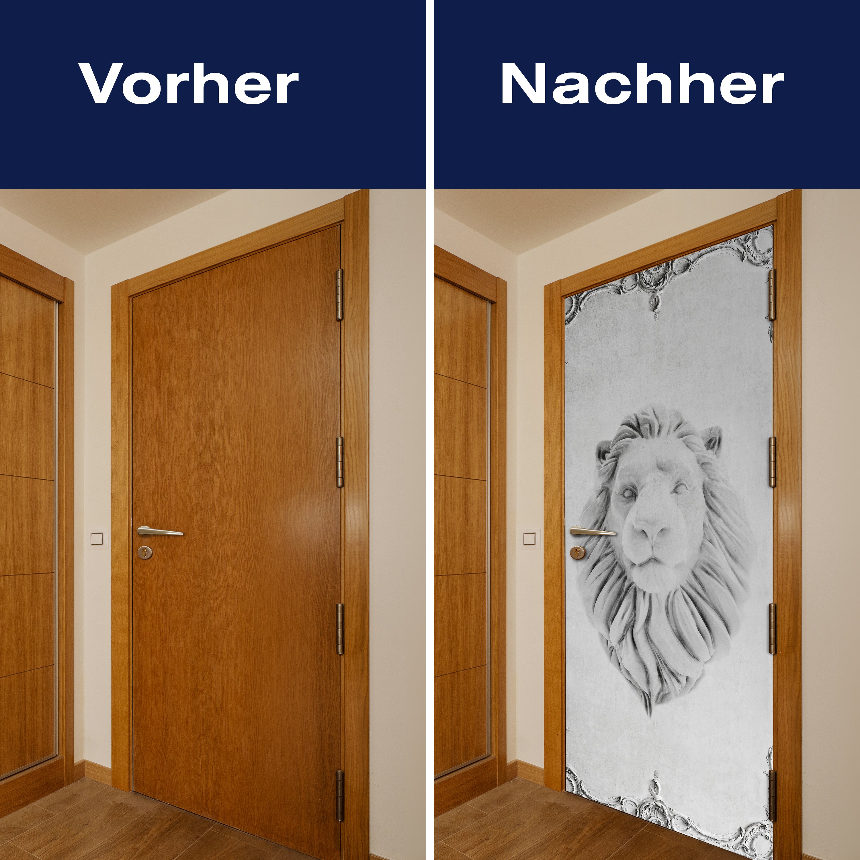 Hast du jemals darüber nachgedacht, wie eine einfache Veränderung deinen Wohnraum komplett umgestalten kann? Die Türtapete großer Löwenkopf, Stuck, Löwe, Marmor von Wandmotiv24 ist genau das, was du brauchst, um deinem Zuhause einen Hauch von Einzigartigkeit und Stil zu verleihen. Dieses einzigartige Design erzielt eine atemberaubende visuelle Wirkung, die jeden Betrachter in den Bann zieht.