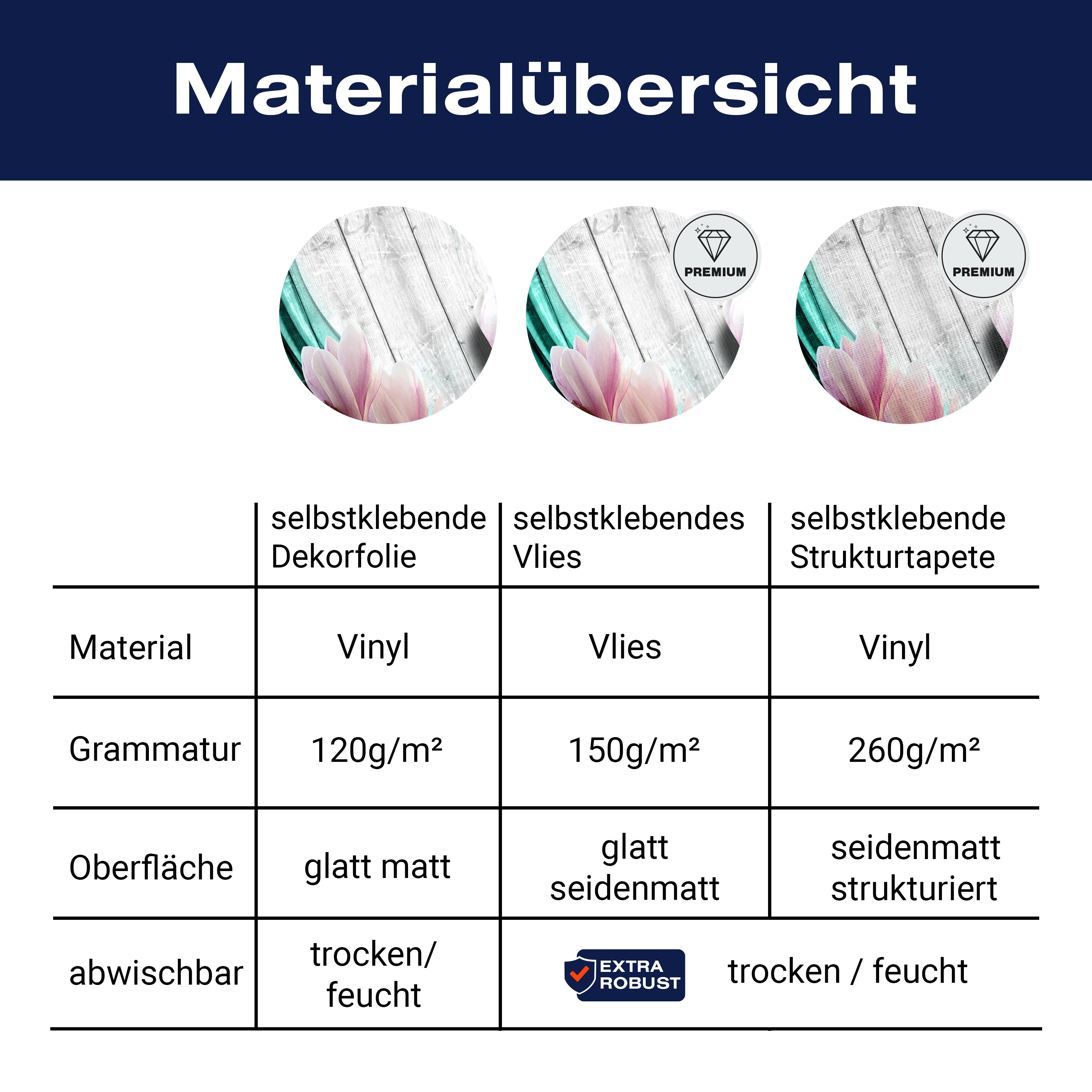 Sag ade zu komplizierten Anbringungsprozessen. Unsere Türtapeten, verfügbar in den Größen von 70x200 cm bis 100x200 cm, ermöglichen eine kinderleichte Installation. Wähle zwischen selbstklebender Dekorfolie, Vlies 150g oder Strukturtapete 260g, um deinem Zuhause einen Hauch von Eleganz zu verleihen.