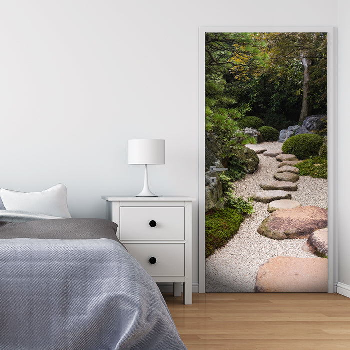 Entdecke die Türtapete Japanischer Zen Garten, Steine, Pflanzen