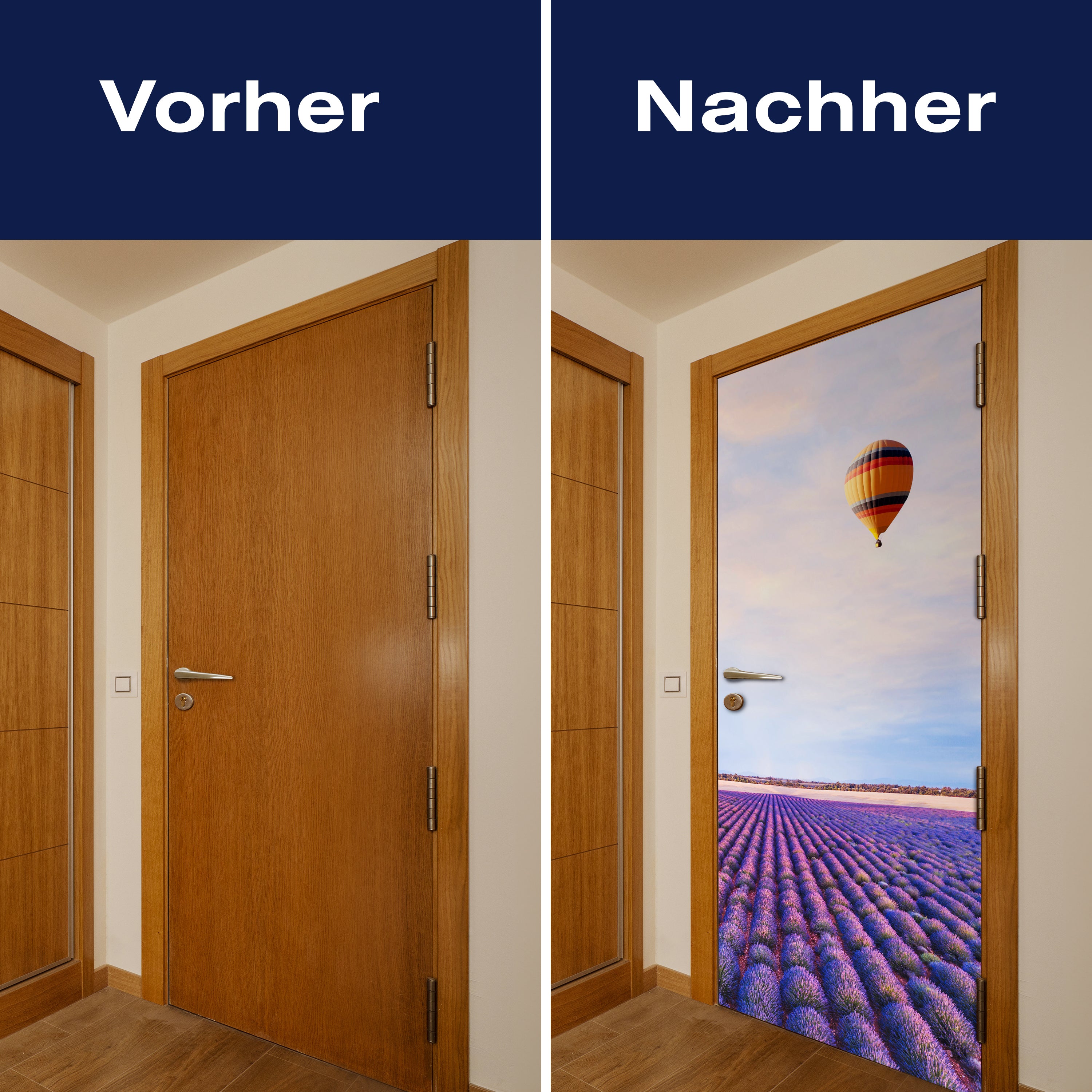 Entdecke die Türtapete Lavendel, Feld, Heißluftballon