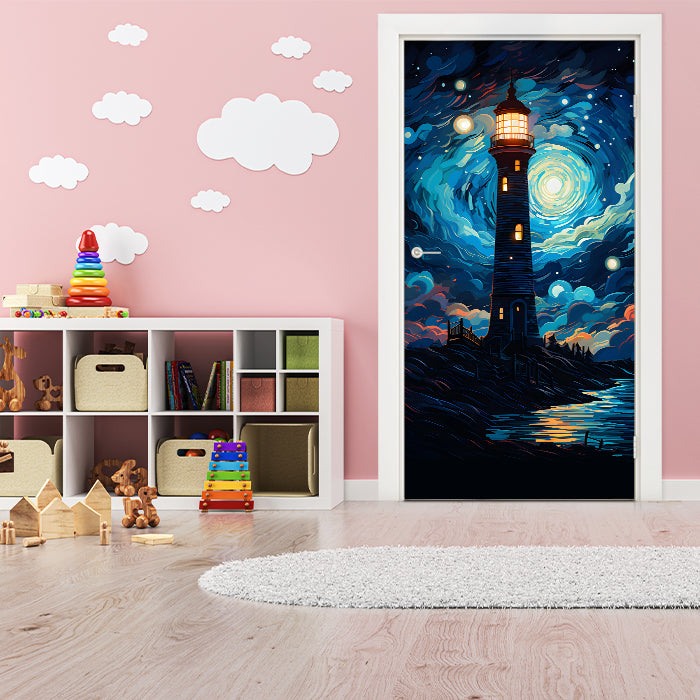 Entdecke die Türtapete Strand, Leuchtturm, Nacht