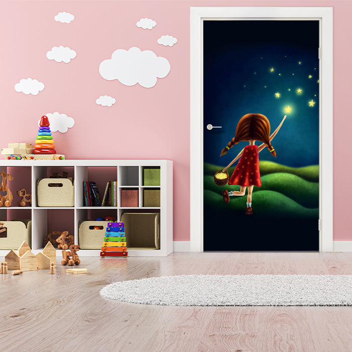 Entdecke die Türtapete Mädchen, Sterne sammeln, Nachthimmel