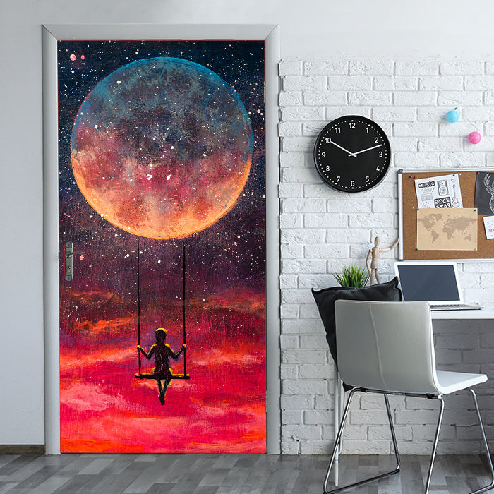 Entdecke die Türtapete Malerei, Mond, Schaukel, Mädchen