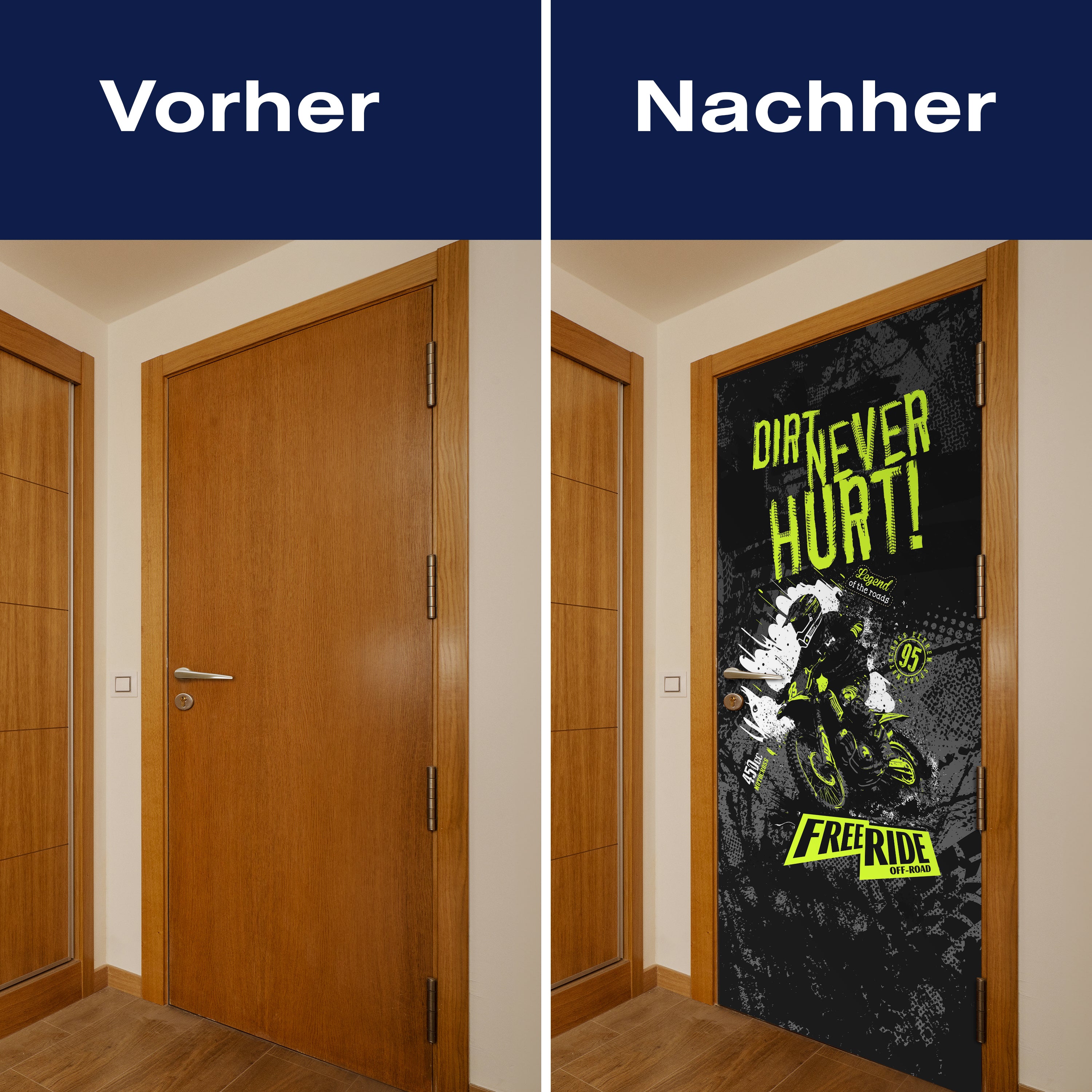 Entdecke die Türtapete Motorrad, Motocross, Spruch, Grün
