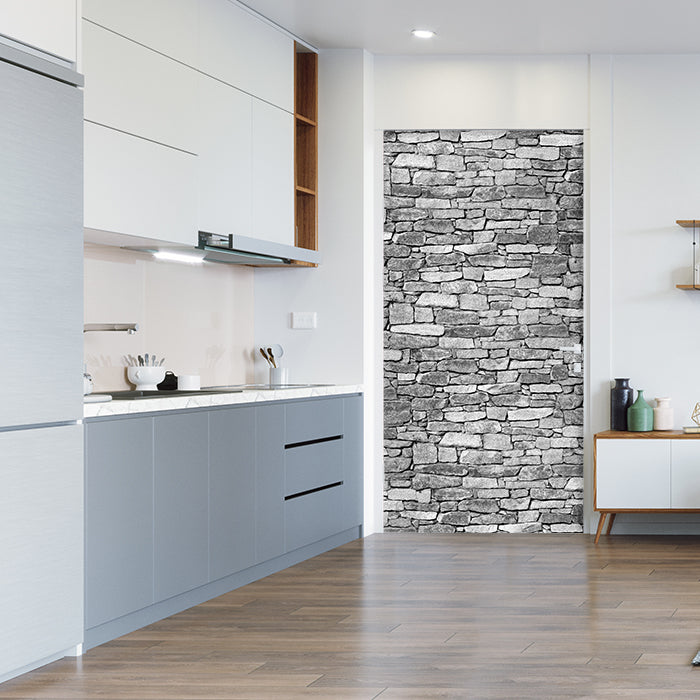 Entdecke die Türtapete Natursteinmauer Grau