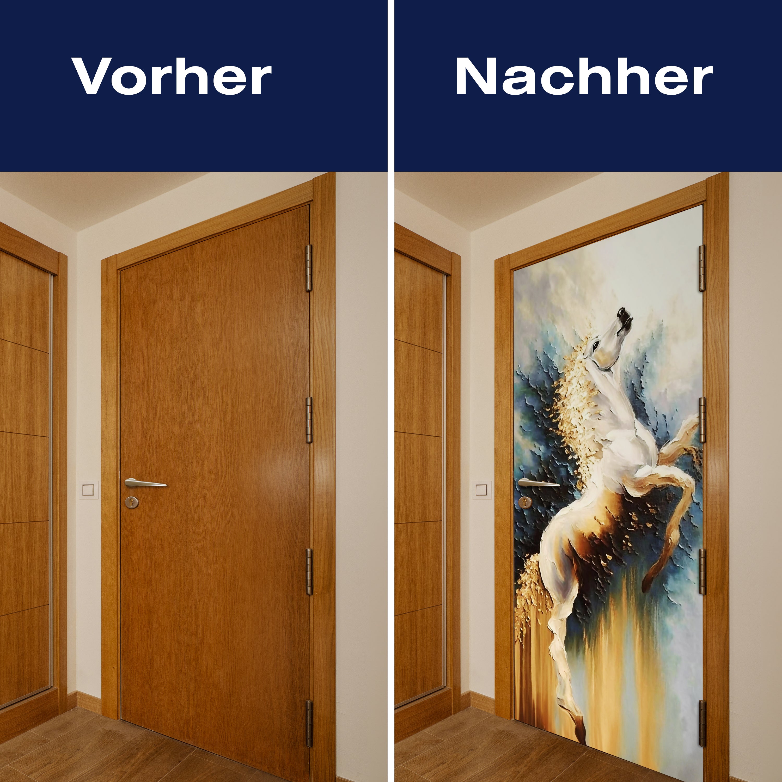 Hast du jemals darüber nachgedacht, wie eine einfache Veränderung deinen Wohnraum komplett umgestalten kann? Die Türtapete weißes Pferd, Schimmel, Gemälde von Wandmotiv24 ist genau das, was du brauchst, um deinem Zuhause einen Hauch von Einzigartigkeit und Stil zu verleihen. Dieses einzigartige Design erzielt eine atemberaubende visuelle Wirkung, die jeden Betrachter in den Bann zieht.
