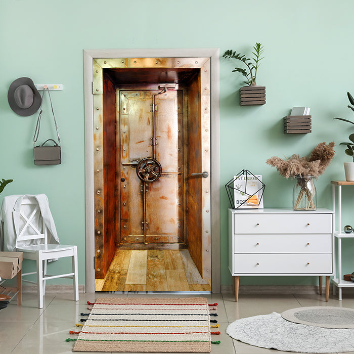 Entdecke die Türtapete rostige Metall Tür mit Dreh Rad, Tresor
