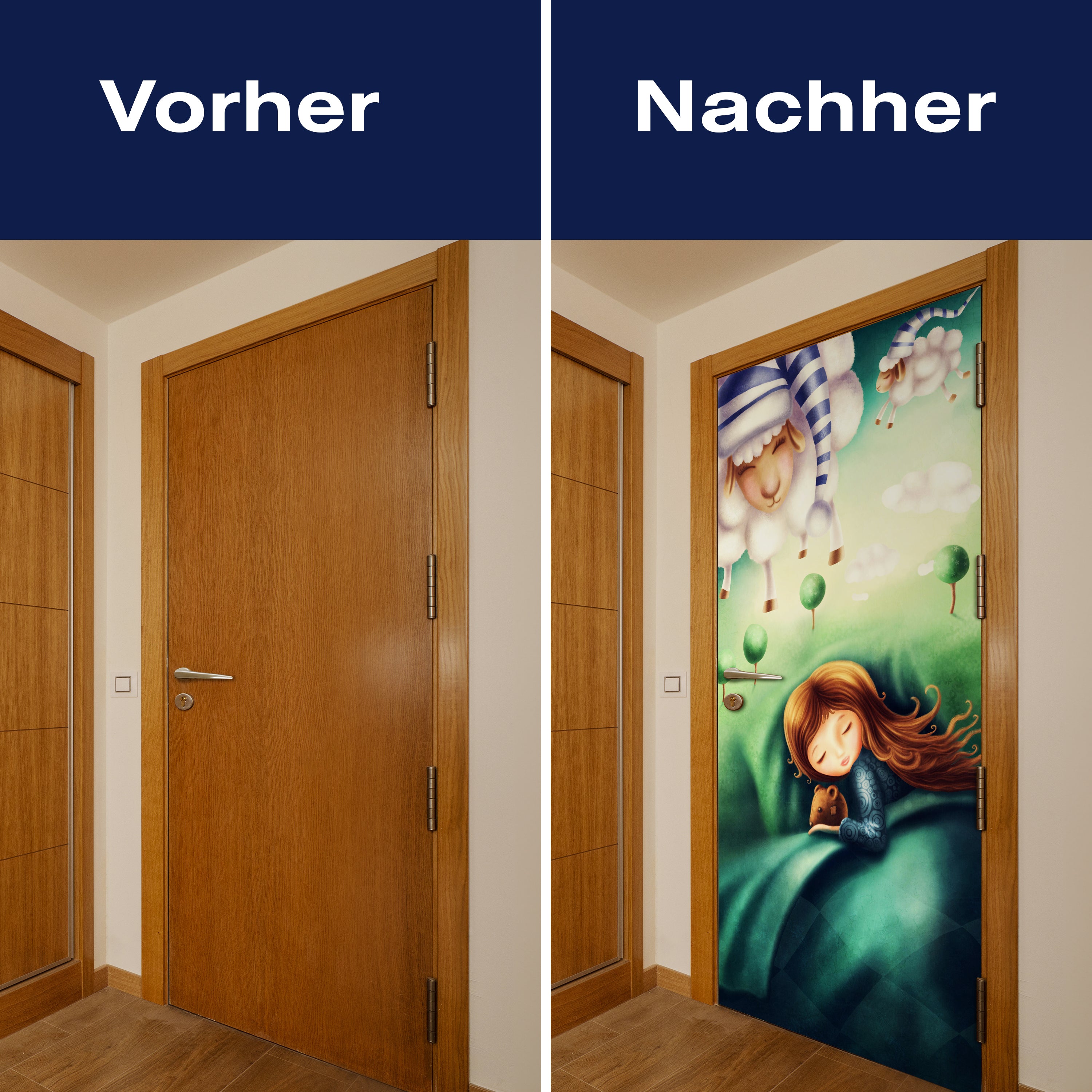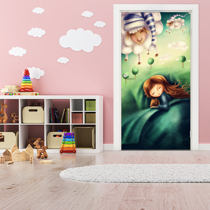 Entdecke die Türtapete schlafendes Kind, Schafe, Träumen, Baum
