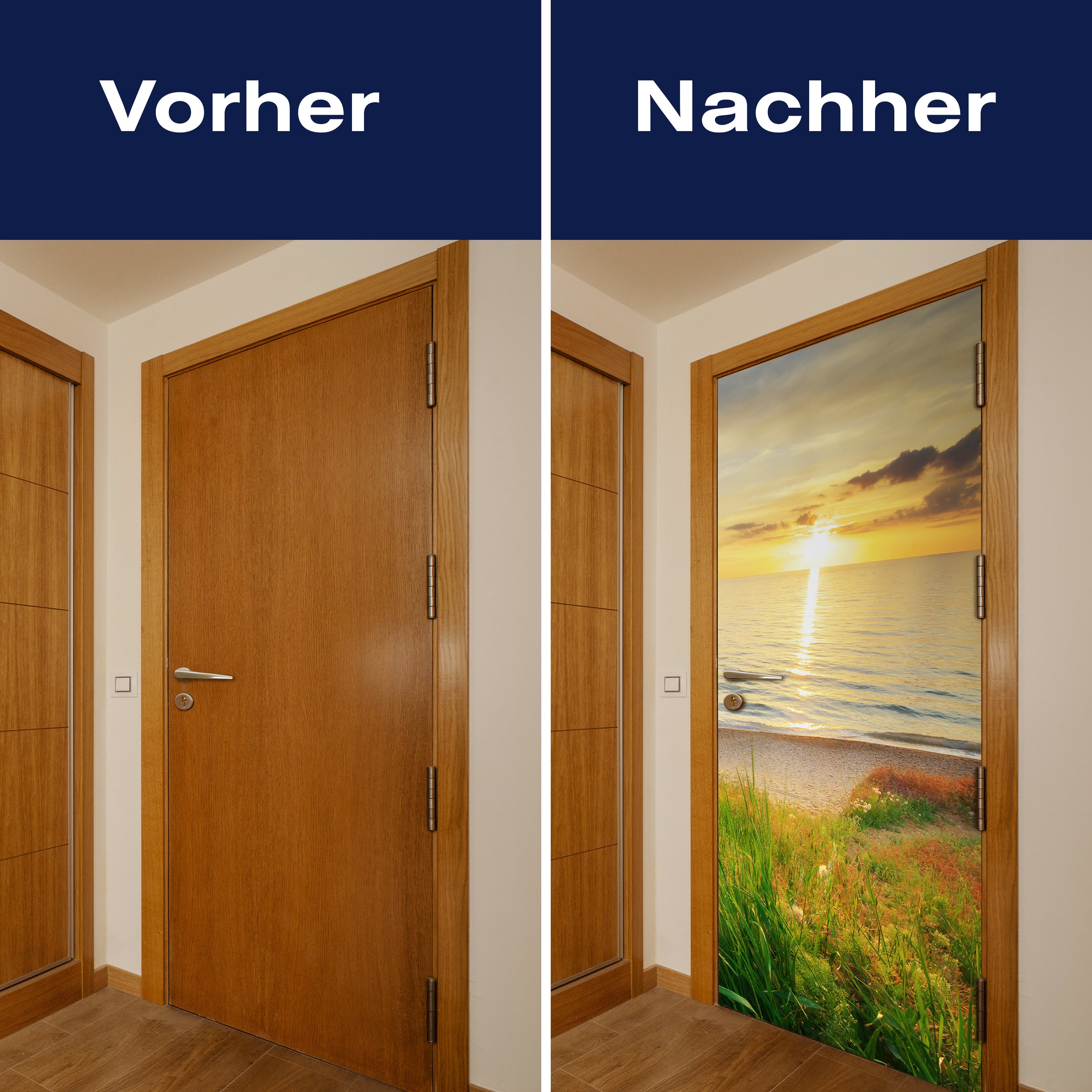 Entdecke die Türtapete Sonnenuntergang an der Küste
