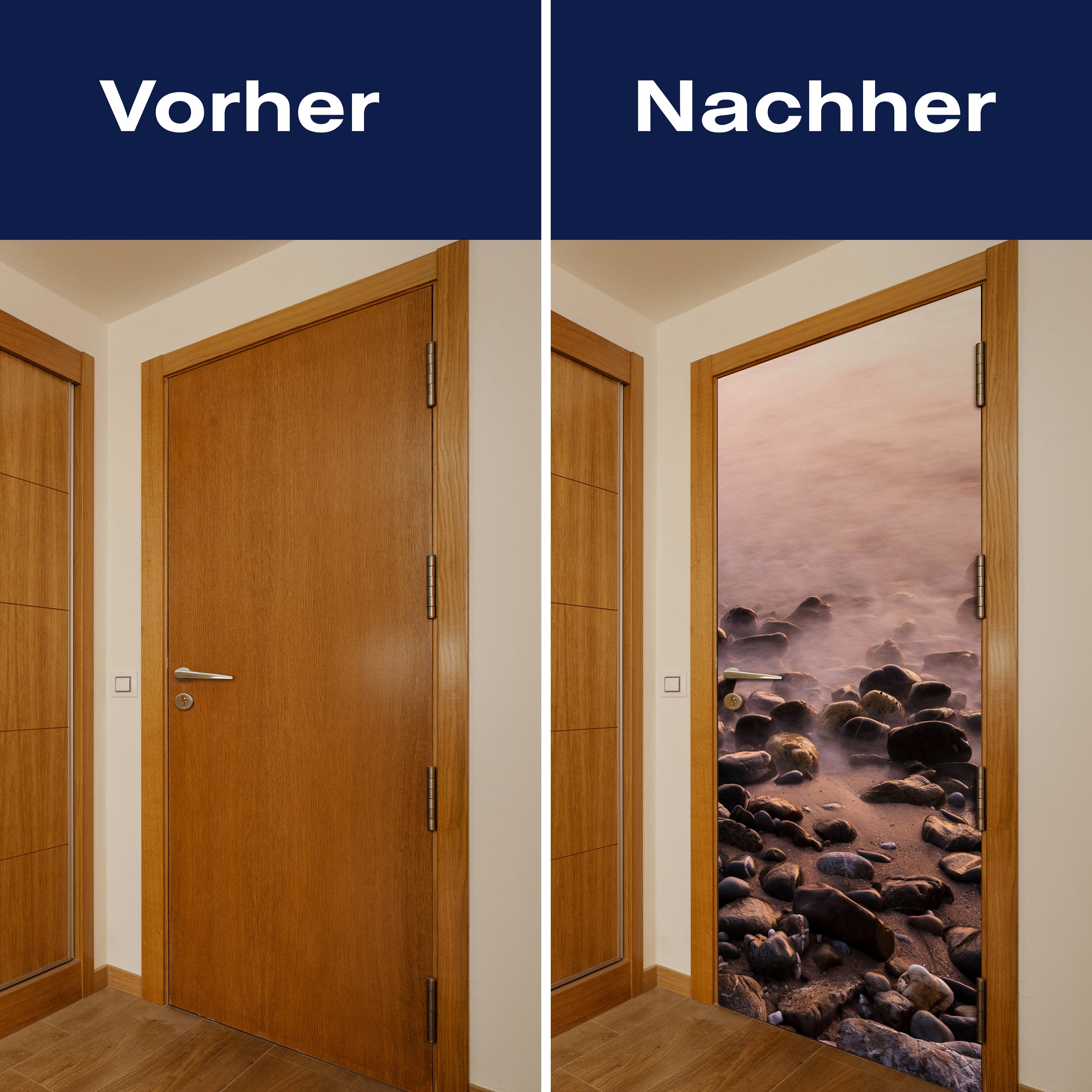 Entdecke die Türtapete Steine und Nebelwasser
