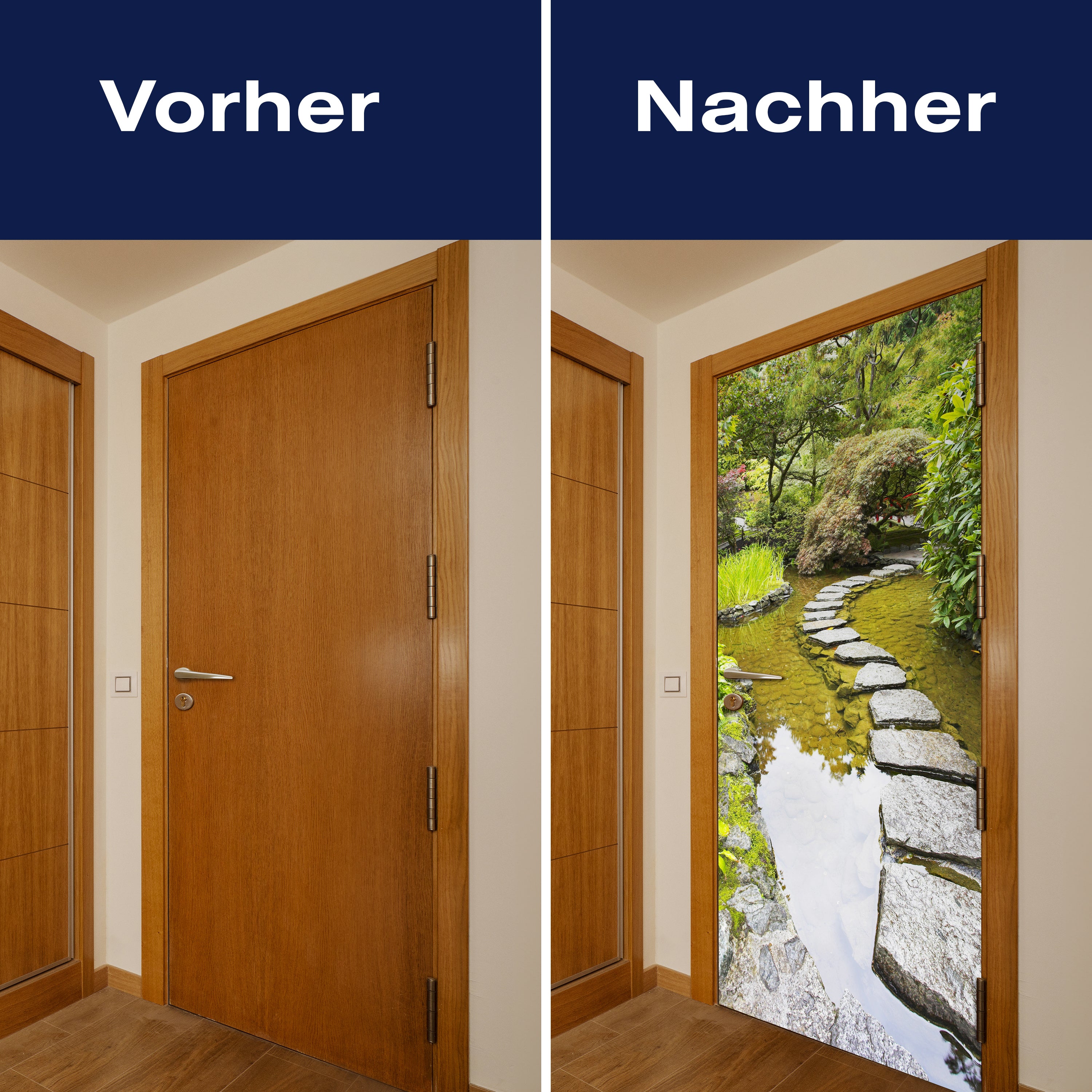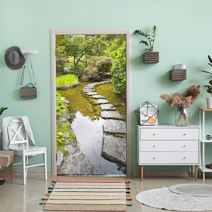 Entdecke die Türtapete Teich japanischer Garten Steine