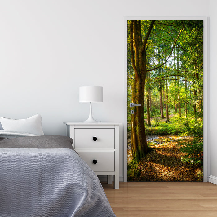 Entdecke die Türtapete Wald, Lichtung, Bäume, Fluss