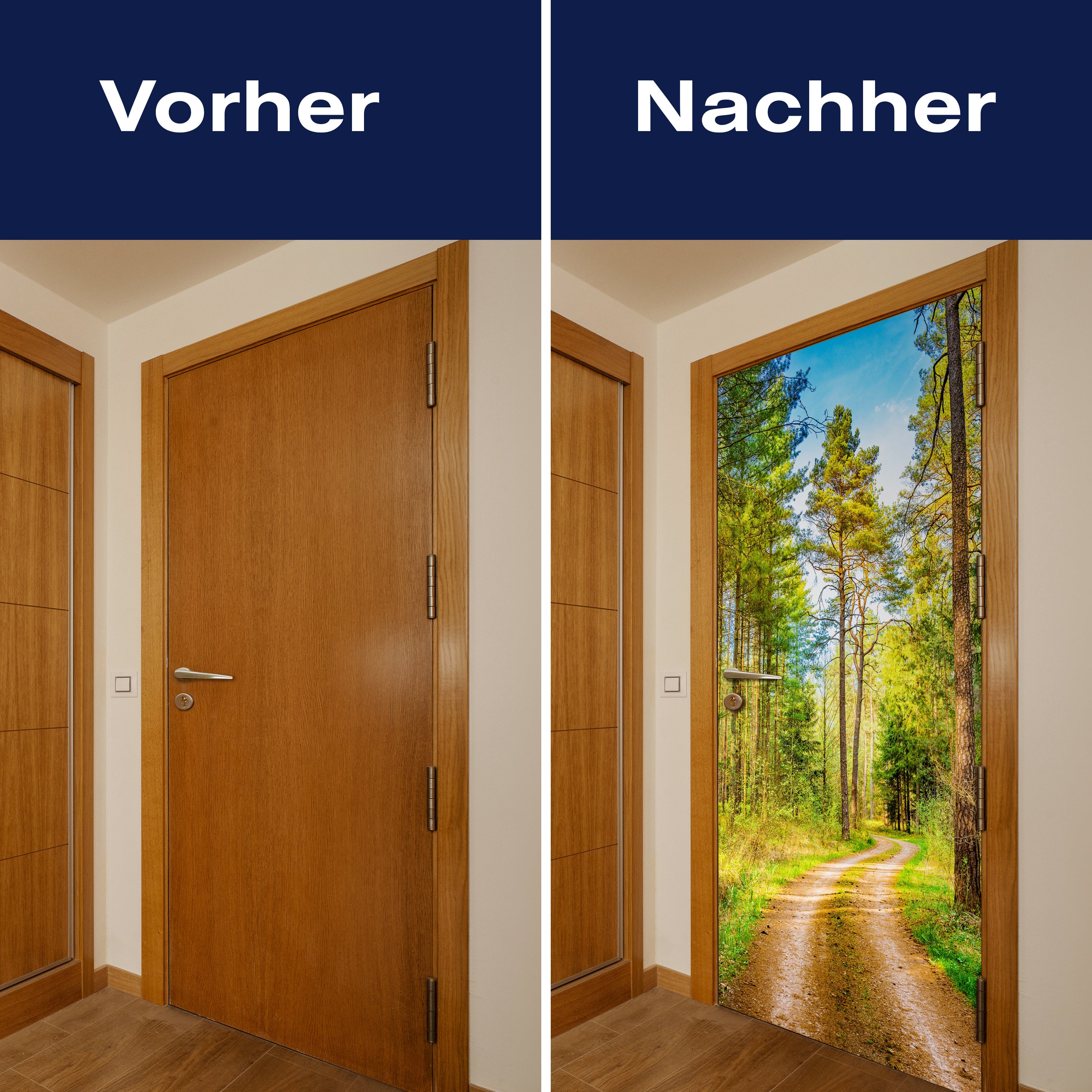 Hast du jemals darüber nachgedacht, wie eine einfache Veränderung deinen Wohnraum komplett umgestalten kann? Die Türtapete Wald, Weg, Bäume von Wandmotiv24 ist genau das, was du brauchst, um deinem Zuhause einen Hauch von Einzigartigkeit und Stil zu verleihen. Dieses einzigartige Design erzielt eine atemberaubende visuelle Wirkung, die jeden Betrachter in den Bann zieht.