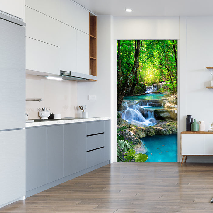 Entdecke die Türtapete Wasser Treppen im Wald, Natur, Bäume