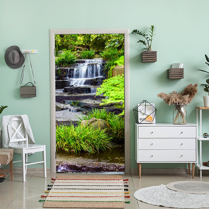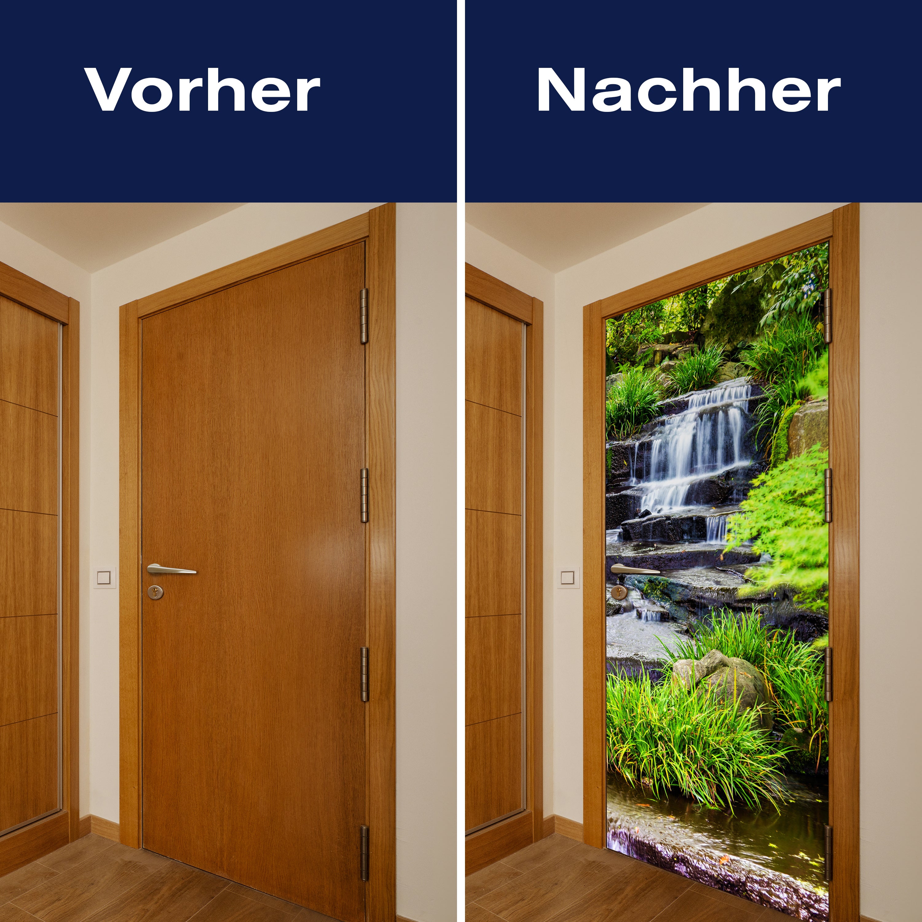 Entdecke die Türtapete Wasserfall, Treppe, Wasser, Bach, Grün
