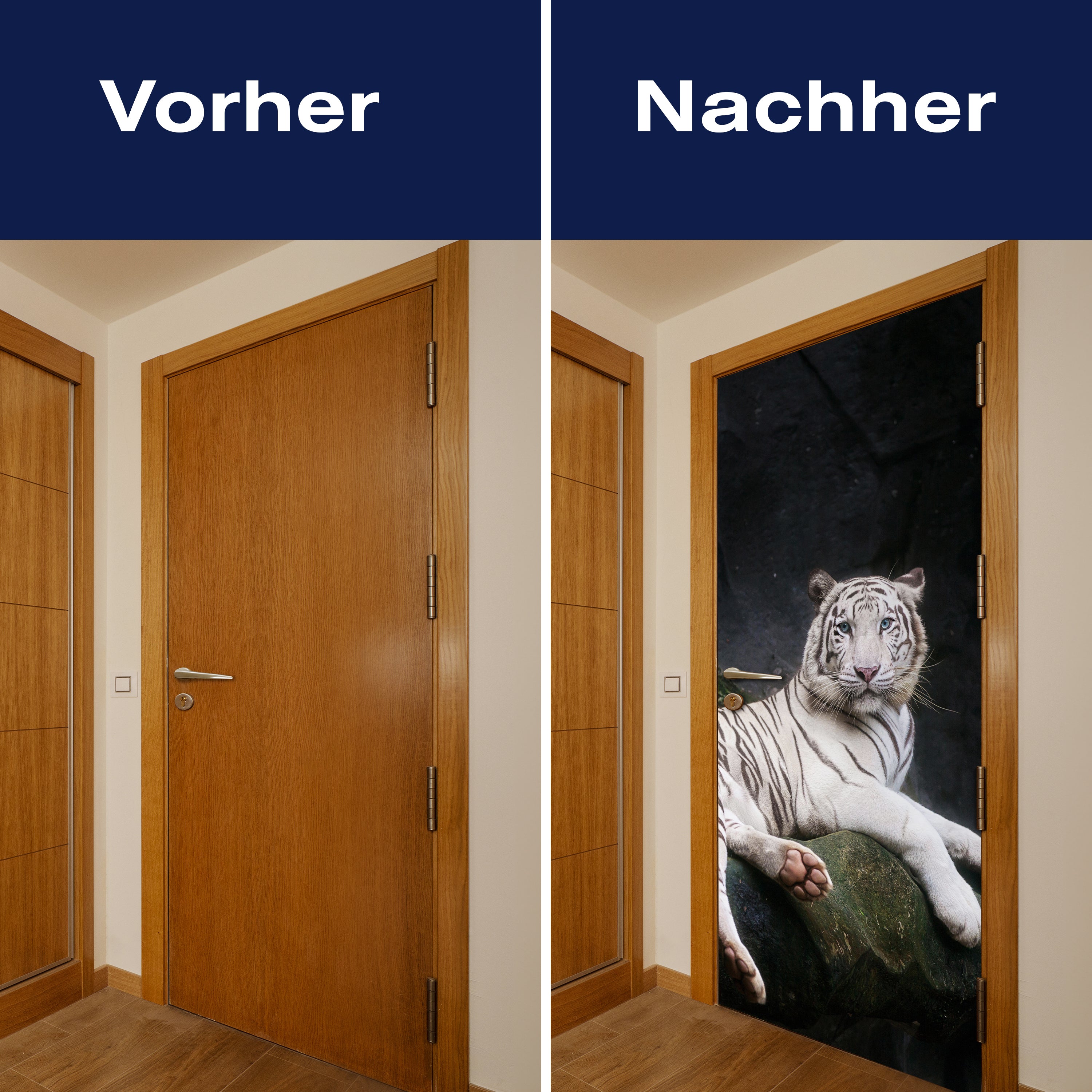 Hast du jemals darüber nachgedacht, wie eine einfache Veränderung deinen Wohnraum komplett umgestalten kann? Die Türtapete Weißer Tiger sitzt in der Höhle von Wandmotiv24 ist genau das, was du brauchst, um deinem Zuhause einen Hauch von Einzigartigkeit und Stil zu verleihen. Dieses einzigartige Design erzielt eine atemberaubende visuelle Wirkung, die jeden Betrachter in den Bann zieht.