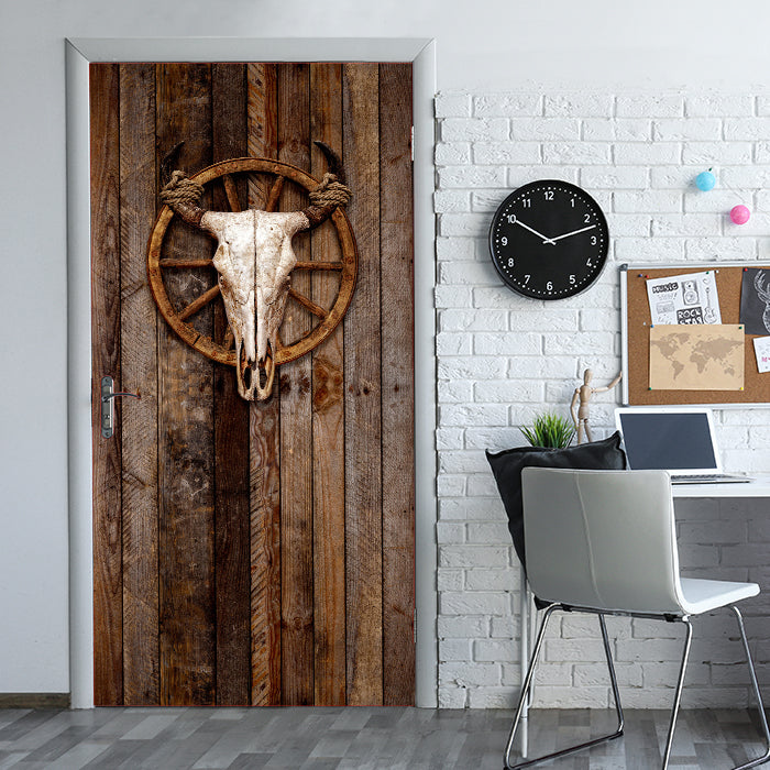 Entdecke die Türtapete Kuh, Totenkopf, Holz, Schädel, Western